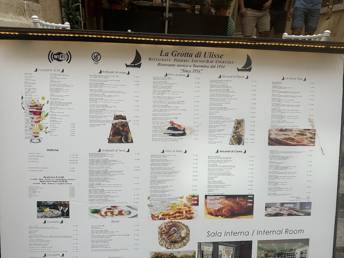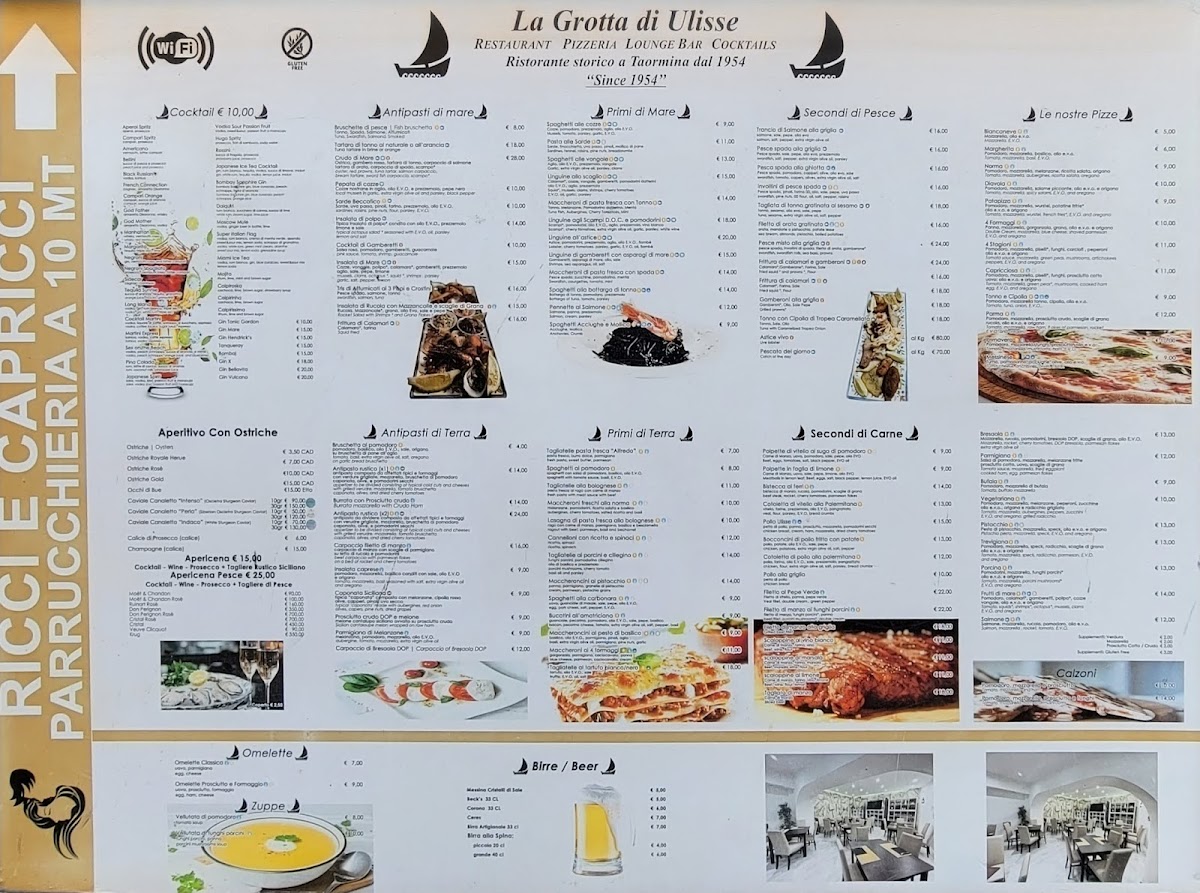 Welcome to Ristorante La Grotta Di Ulisse, a hidden gem nestled in the charming streets of Taormina, Italy. This delightful restaurant offers an inviting Mediterranean ambiance, enhanced by outdoor seating that overlooks picturesque views.